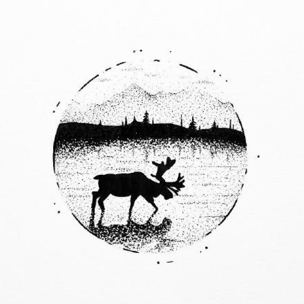 点刺小鹿手稿:几何点刺圆形中的小鹿纹身素材图片