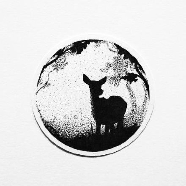 点刺小鹿手稿:几何点刺圆形中的小鹿纹身素材图片