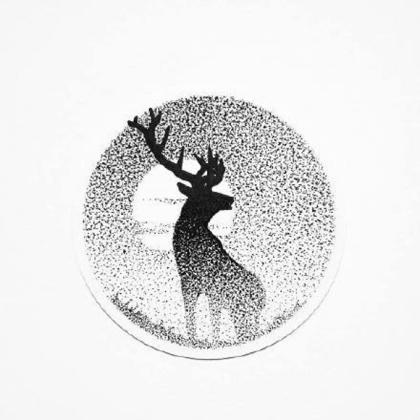 点刺小鹿手稿:几何点刺圆形中的小鹿纹身素材图片
