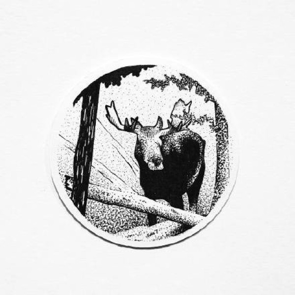 点刺小鹿手稿:几何点刺圆形中的小鹿纹身素材图片