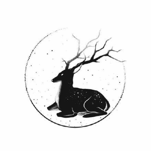 点刺小鹿手稿:几何点刺圆形中的小鹿纹身素材图片