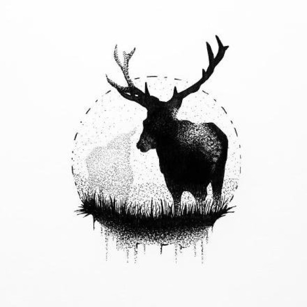点刺小鹿手稿:几何点刺圆形中的小鹿纹身素材图片