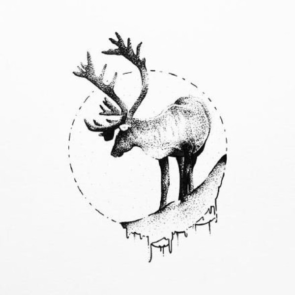 点刺小鹿手稿:几何点刺圆形中的小鹿纹身素材图片