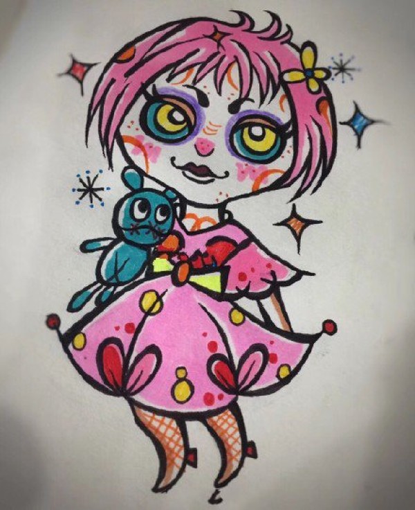 少女心爆棚的小清新粉彩色纹身手稿图案