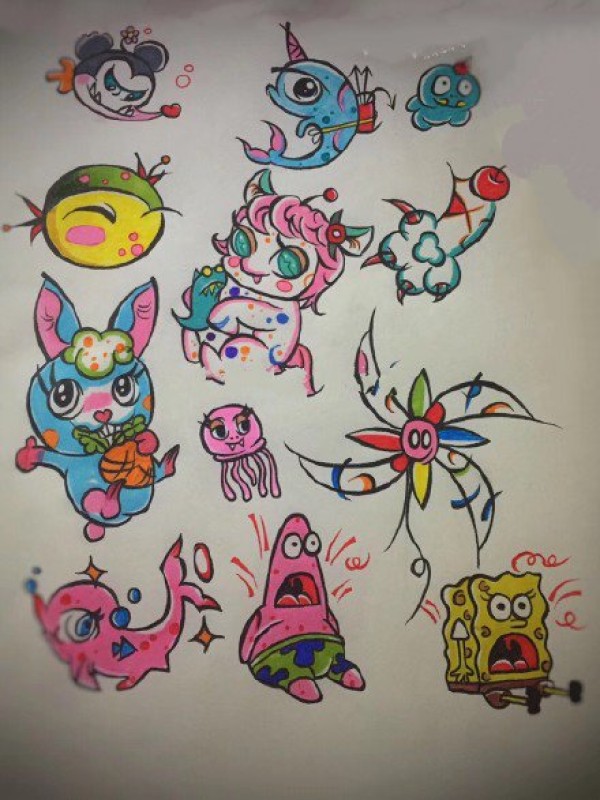 一组newschool适合做遮盖的的纹身素材图片