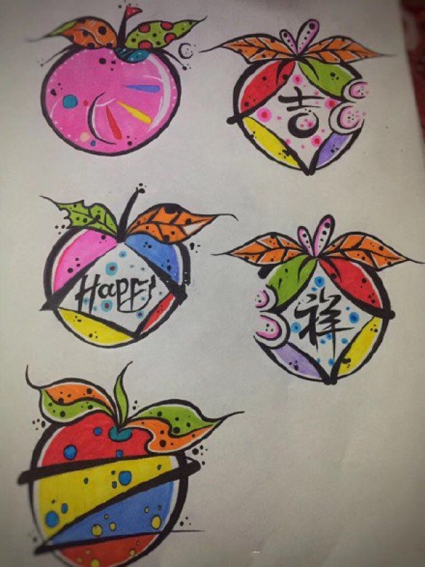 少女心爆棚的小清新粉彩色纹身手稿图案
