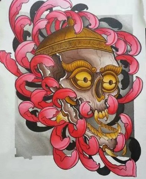传统艺妓般若纹身图案手稿