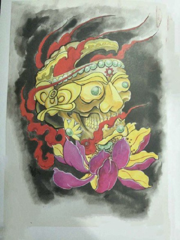 传统艺妓般若纹身图案手稿