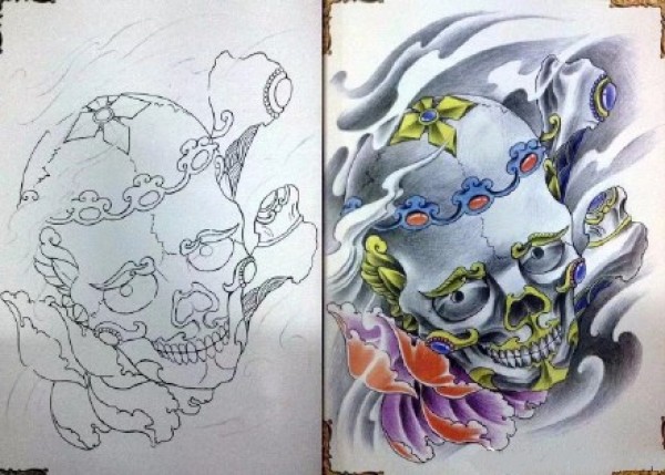 传统艺妓般若纹身图案手稿