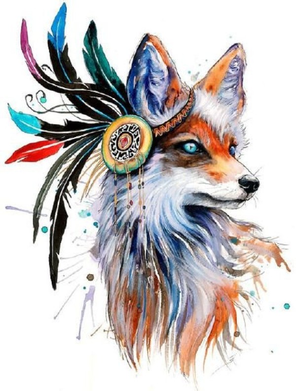 结合印第安部落元素的动物狼和狮子等纹身手稿图案
