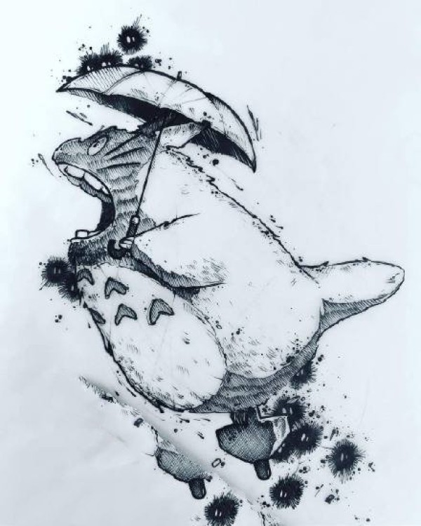 酷酷的一组动漫角色的纹身黑白手稿线稿图案