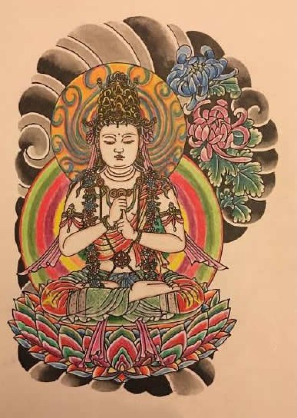 老传统风格的一组半胛佛观音等纹身手稿图案