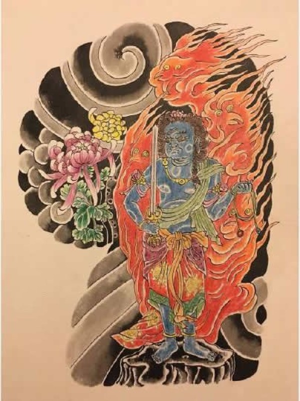 老传统风格的一组半胛佛观音等纹身手稿图案