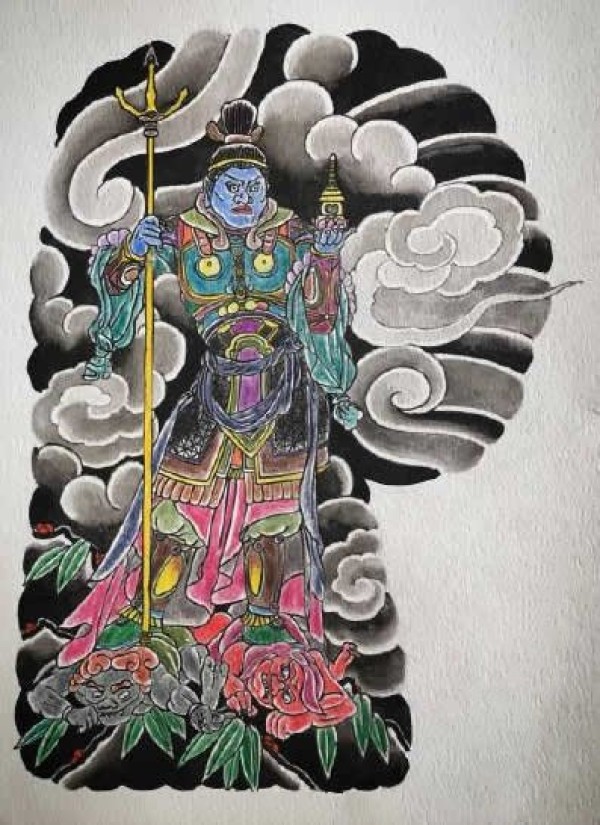 老传统风格的一组半胛佛观音等纹身手稿图案