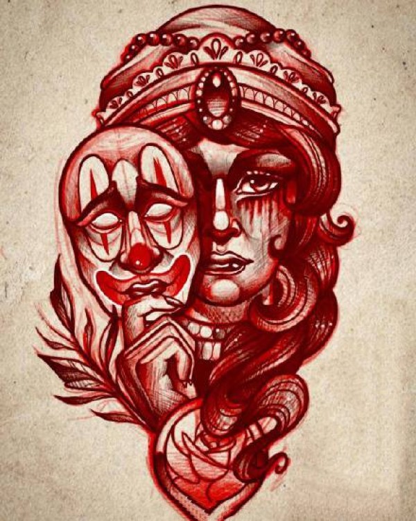 传统艺妓般若纹身图案手稿