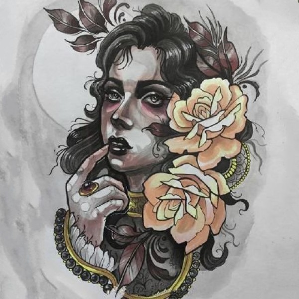 44张new school风格的漂亮彩色纹身手稿图案