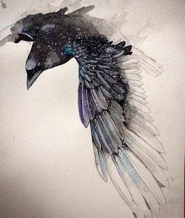 深黑色的一组乌鸦纹身手稿图案欣赏