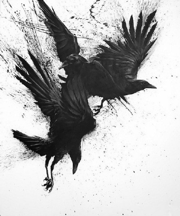 深黑色的一组乌鸦纹身手稿图案欣赏
