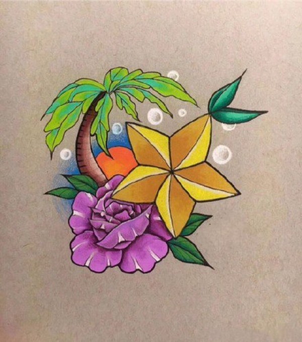 26张彩色的小清新小图案纹身手稿图片