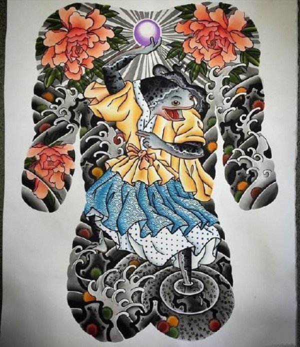 一组满背大气九龙拉棺纹身图案作品和手稿