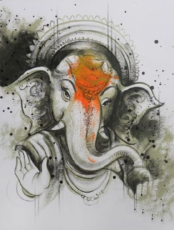 一组比较特别的红头象神纹身手稿图案9张