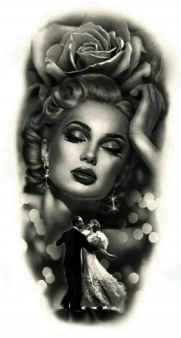 36张超写实风格的的欧美黑灰大臂纹身手稿