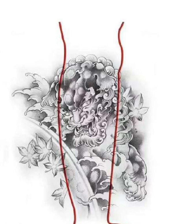 半甲唐狮手稿 传统的9款唐狮主题半甲纹身手稿图片