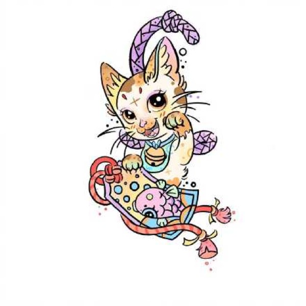 超卡哇伊的一组可爱卡通纹身手稿图案