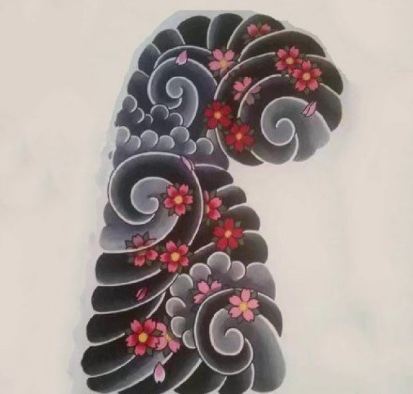 老传统半甲的樱花牡丹等花卉半胛纹身手稿