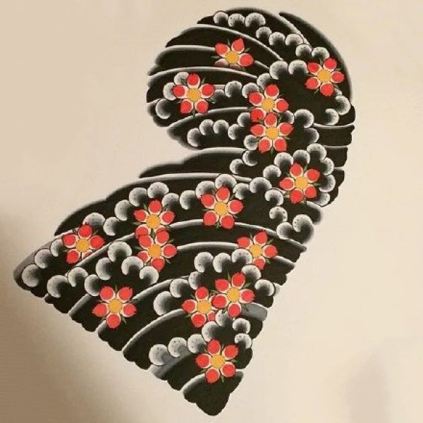 老传统半甲的樱花牡丹等花卉半胛纹身手稿