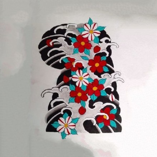 老传统半甲的樱花牡丹等花卉半胛纹身手稿