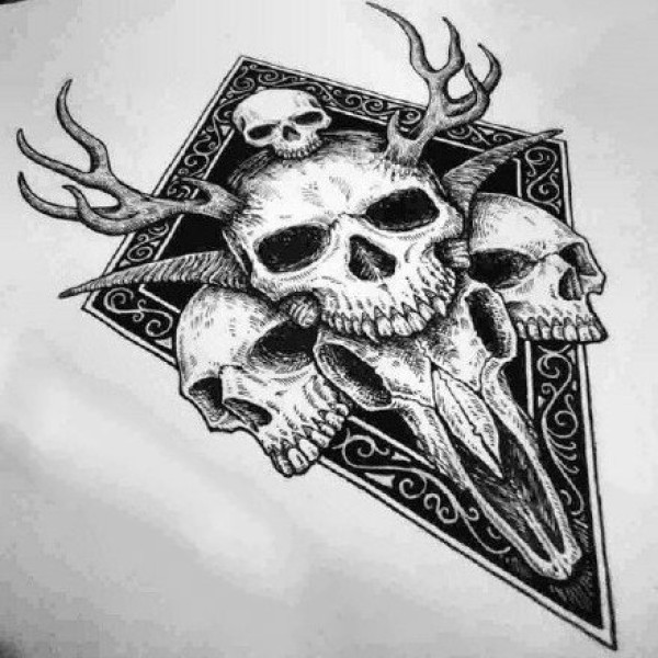 暗黑骷髅风格的一组骷髅纹身手稿9张
