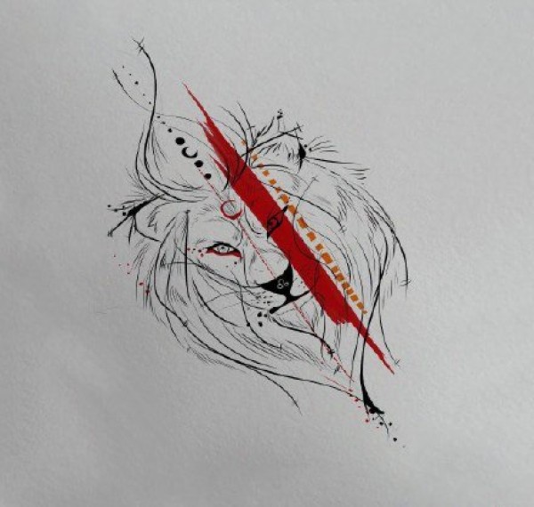 半甲唐狮手稿 传统的9款唐狮主题半甲纹身手稿图片