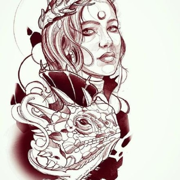 半甲唐狮手稿 传统的9款唐狮主题半甲纹身手稿图片