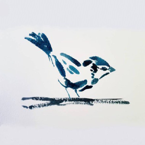 水彩水墨风格的一组飞鸟等动物纹身手稿图案