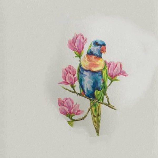 水彩水墨风格的一组飞鸟等动物纹身手稿图案