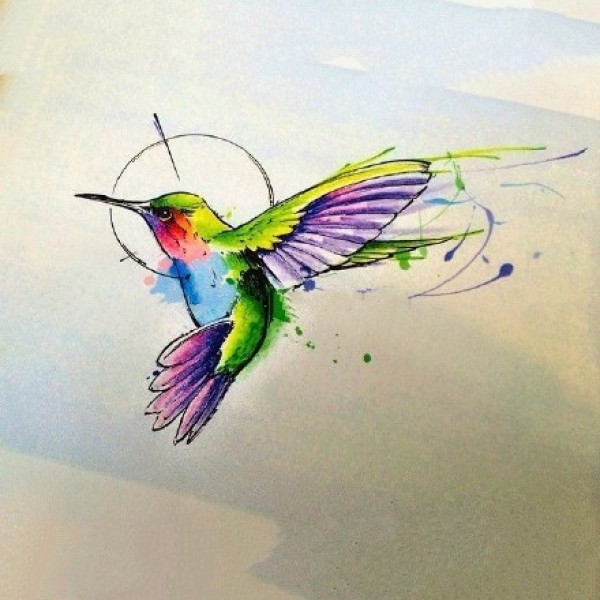 水彩水墨风格的一组飞鸟等动物纹身手稿图案