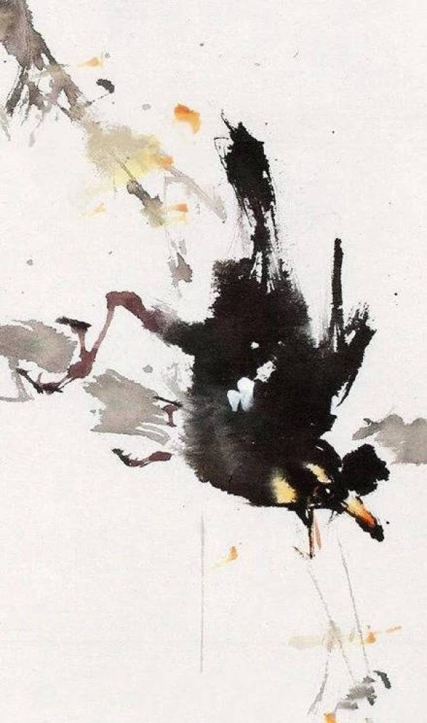 水彩水墨风格的一组飞鸟等动物纹身手稿图案