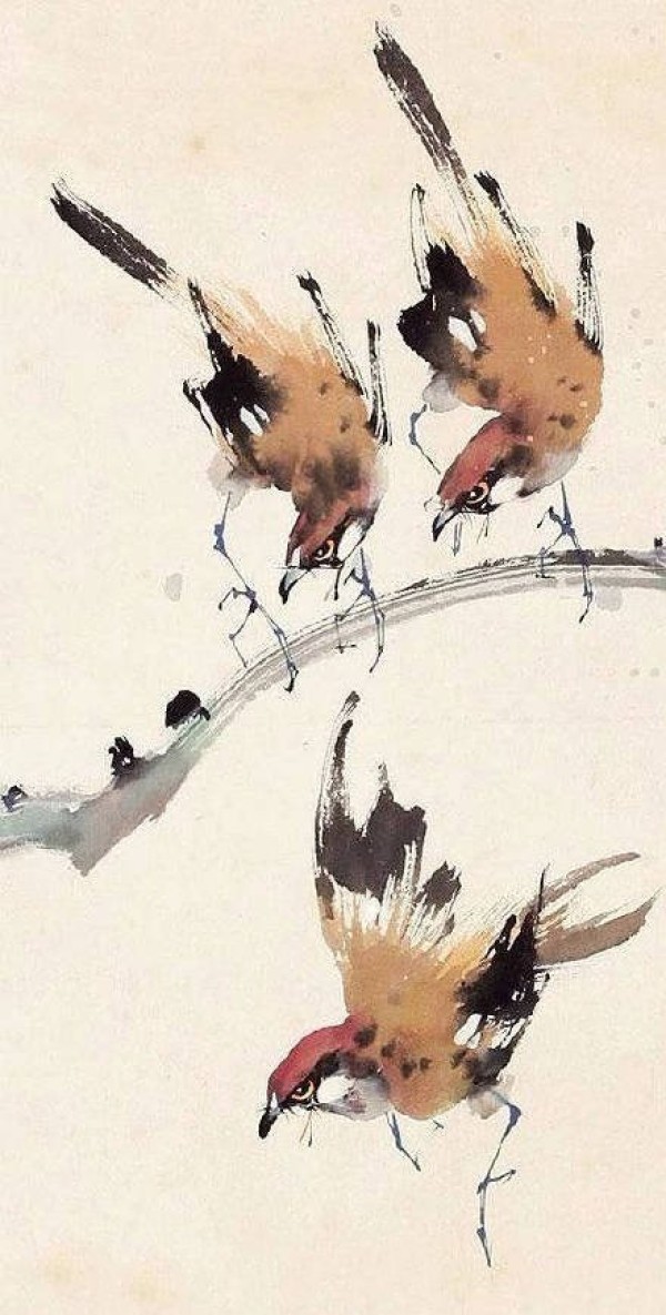 水彩水墨风格的一组飞鸟等动物纹身手稿图案