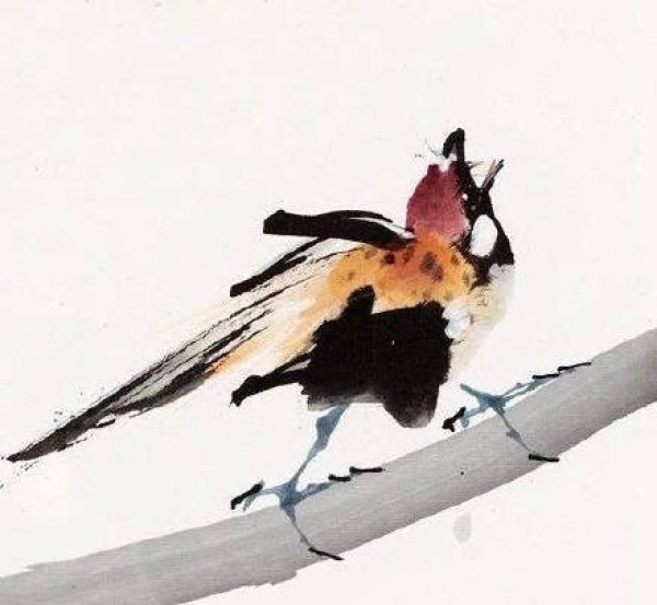 水彩水墨风格的一组飞鸟等动物纹身手稿图案