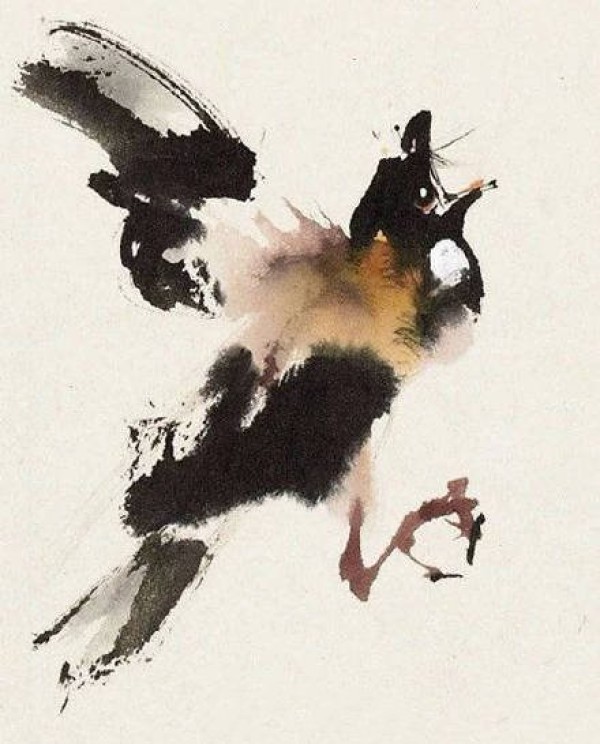 水彩水墨风格的一组飞鸟等动物纹身手稿图案