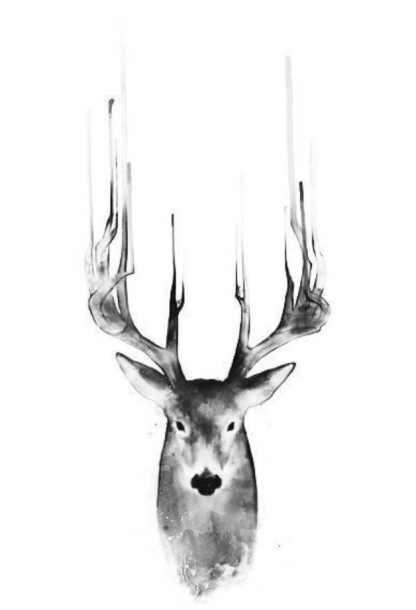 水彩水墨风格的一组飞鸟等动物纹身手稿图案