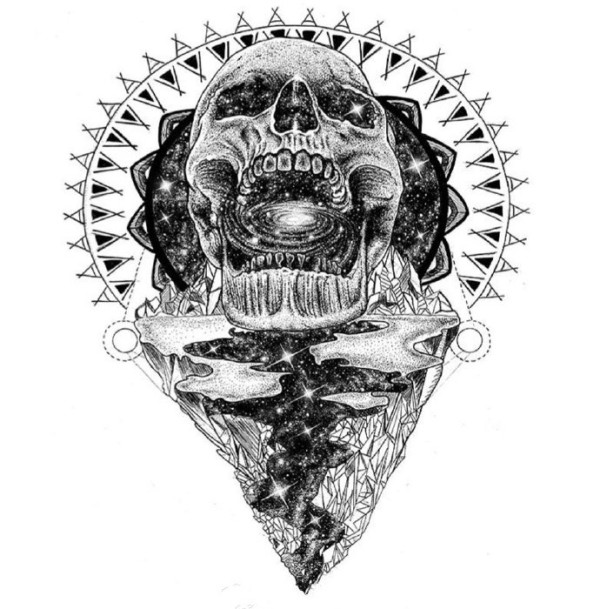带星空梦幻元素的一组黑色创意纹身素材手稿