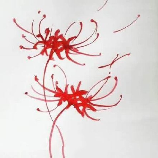 红色彼岸花手稿:一组红色的曼陀罗彼岸花纹身图案手稿