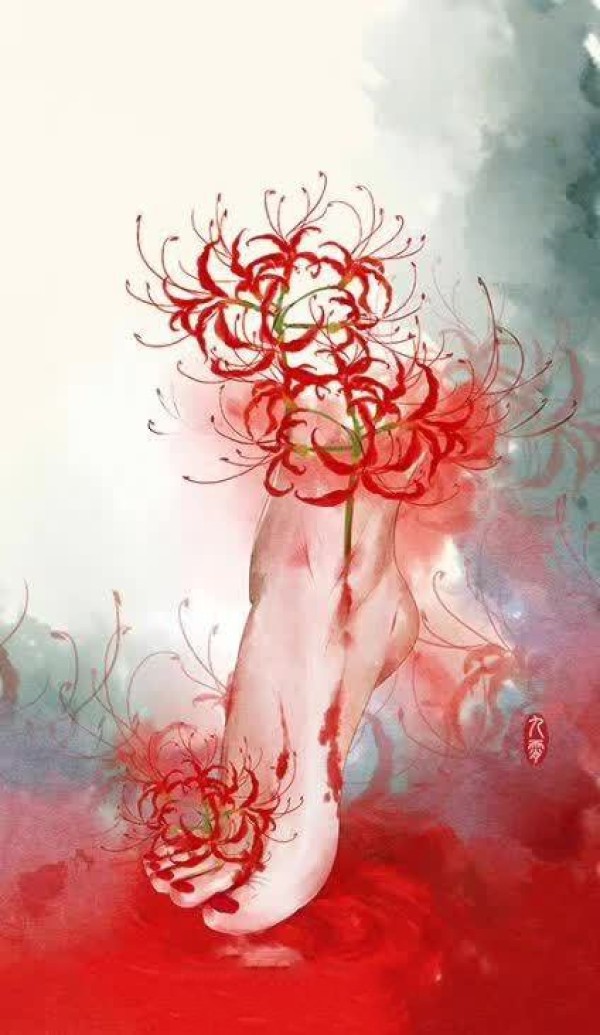 红色彼岸花手稿:一组红色的曼陀罗彼岸花纹身图案手稿