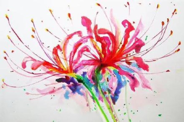 红色彼岸花手稿:一组红色的曼陀罗彼岸花纹身图案手稿