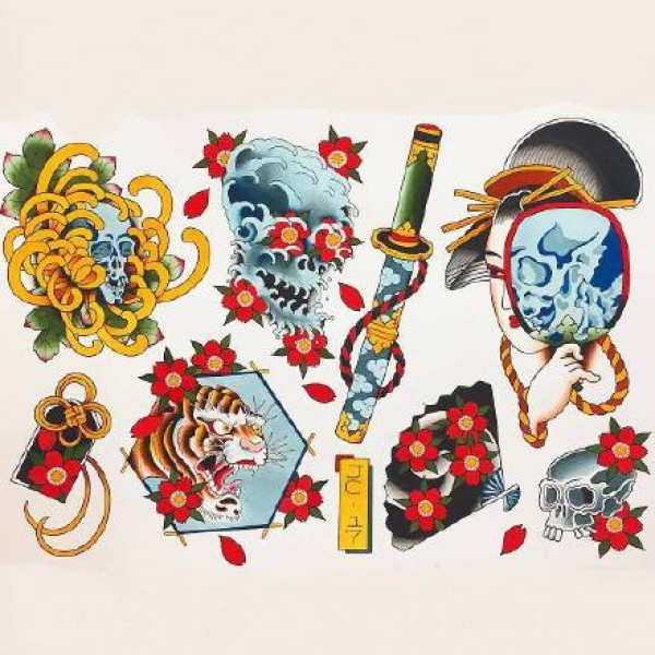 日式小图手稿:25张传统风格的彩色小日式纹身手稿图案
