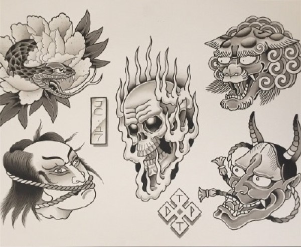 日式小图手稿:25张传统风格的彩色小日式纹身手稿图案