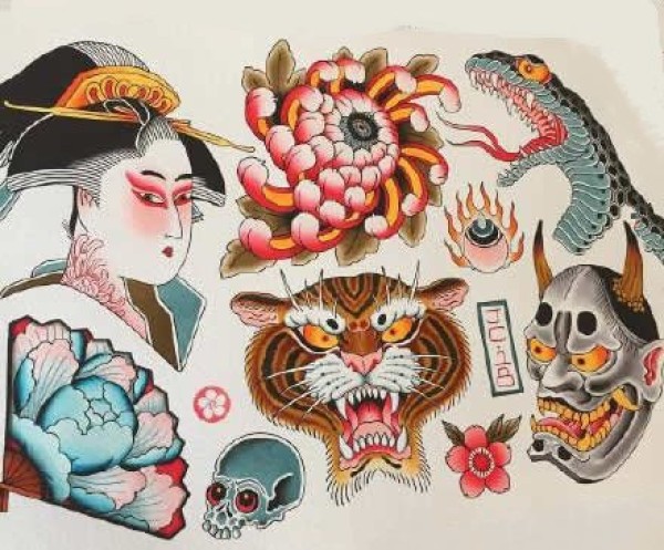 日式小图手稿:25张传统风格的彩色小日式纹身手稿图案