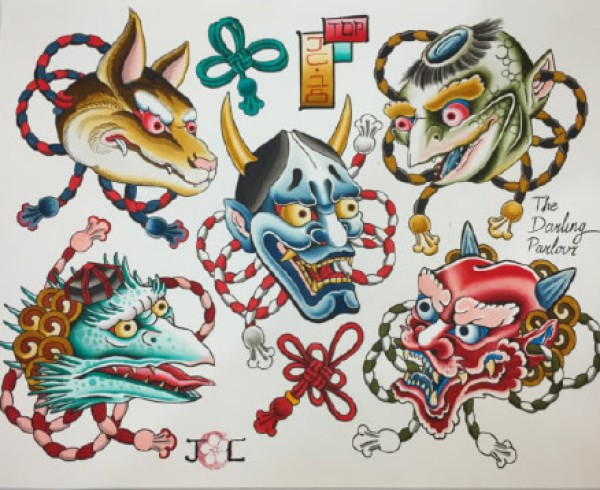 日式小图手稿:25张传统风格的彩色小日式纹身手稿图案